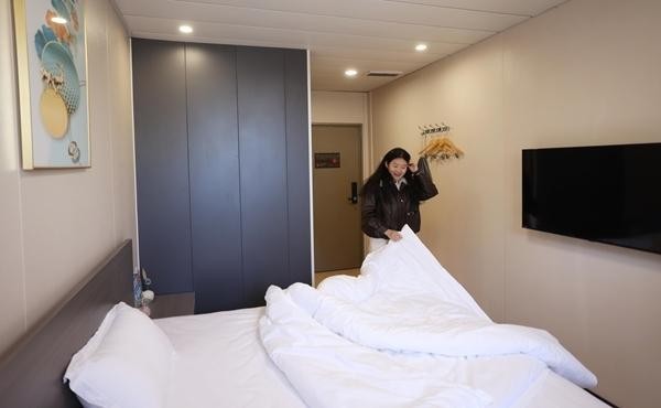 3月12日,北京亦庄,刚刚入住亦嘉·新青年小镇的侯姝华在整理房间。视觉中国供图
