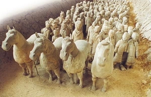 狮子山西汉楚王陵的汉兵马俑陪葬坑(一号俑坑军阵)。