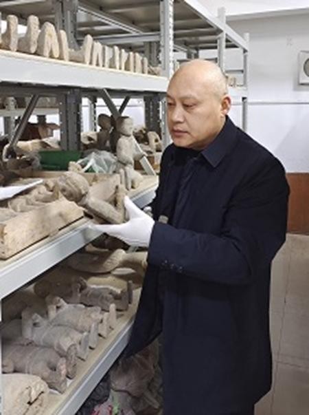 葛明宇正在检查徐州汉兵马俑博物馆库房兵马陶俑。