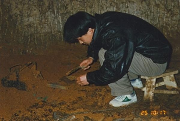 1995年3月,葛明宇正在发掘清理狮子山西汉楚王陵墓室遗物。本文图片均由葛明宇提供