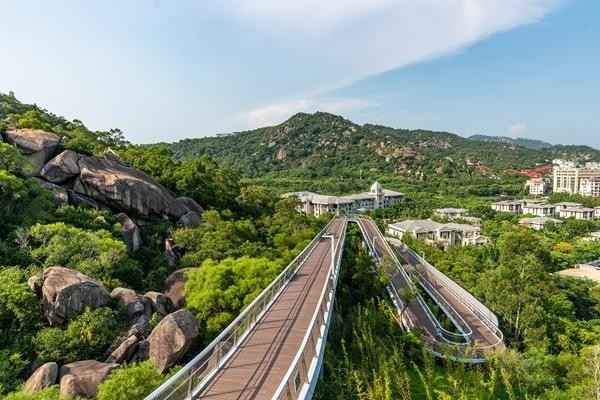 9月29日,福建厦门,山海健康步道。厦门山海健康步道林海线是贯穿厦门市域的大型无障碍公共步道,采用弹性铺装与防滑骑行道复合设计,配备8部无障碍电梯及36个出入口,为游客提供优质体验。视觉中国供图