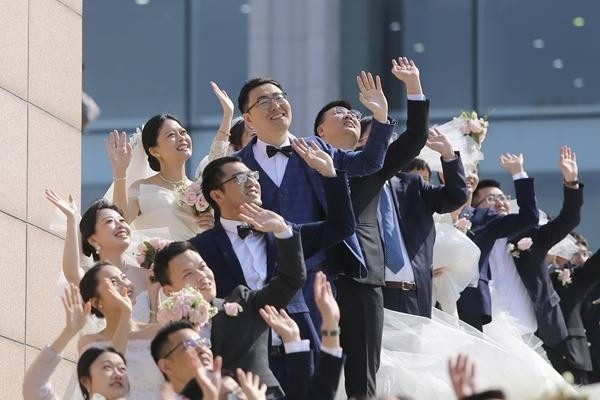 2025中国海洋大学校友集体婚礼 视觉中国供图