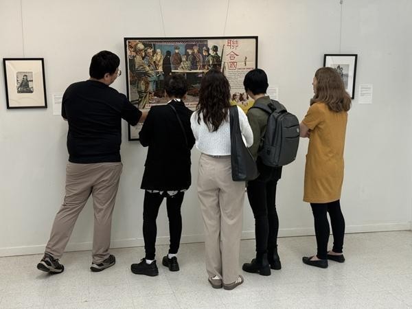 为纪念中国人民抗日战争暨世界反法西斯战争胜利80周年,段宇豪特意请了一周假,在多伦多自费办展。这是他第一次独立策划展览、申请场地、布置展厅,同为江苏老乡的妻子在一旁帮忙。展览时间从北京时间的2025年9月9日持续到14日,正好与中国接受日本投降的纪念日重叠。