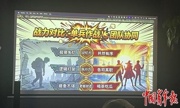 3月13日,北京中关村一场“龙虾”主题沙龙上,王萌萌分享自己训练数字员工的经验。中青报·中青网记者 郭玉洁/摄