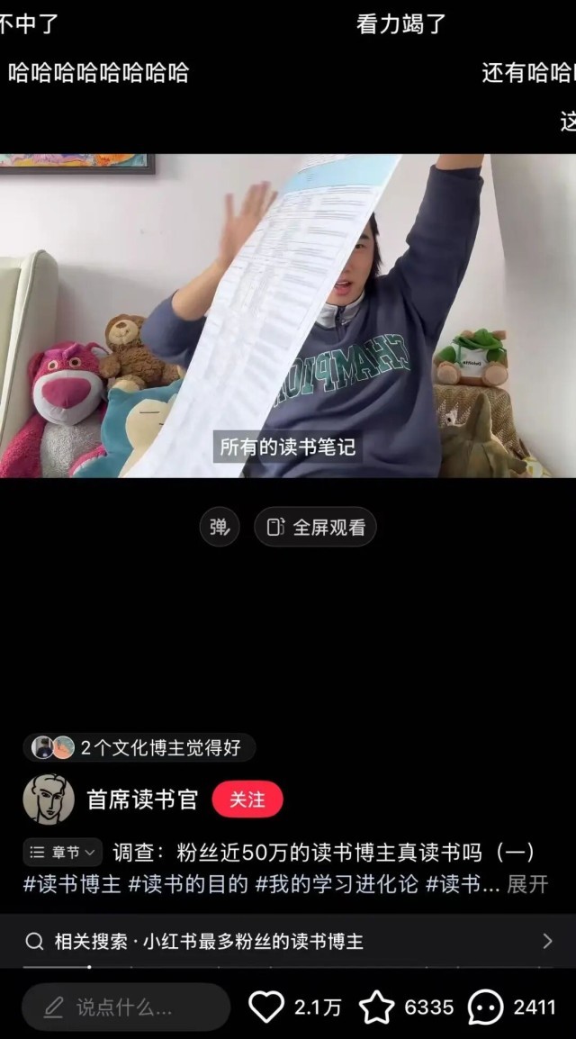 上观新闻消息,近日,博主“首席读书官”发出的一期视频火了。