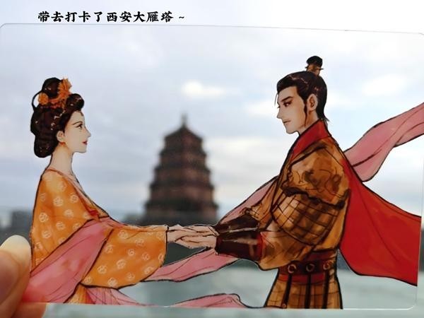 “晚来风祐”的李世民与长孙皇后的透卡,在西安大雁塔前的打卡拍摄。受访者供图