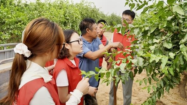 2025年7月,塔里木大学新疆昆玉红枣科技小院驻点研究生针对农户枣园的坐果情况进行调研。受访者供图