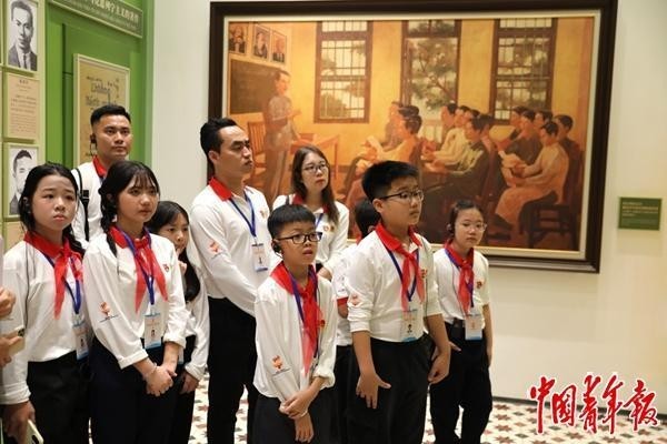 在范鸿泰烈士墓前,越南少先队员们神情肃穆;在展厅中,他们一边聆听讲解,一边用手机记录细节。来自越南胡志明市的少先队辅导员胡文戴感叹:“要如何去生活、去学习、去付出,才能不辜负前辈们的牺牲与奉献。”