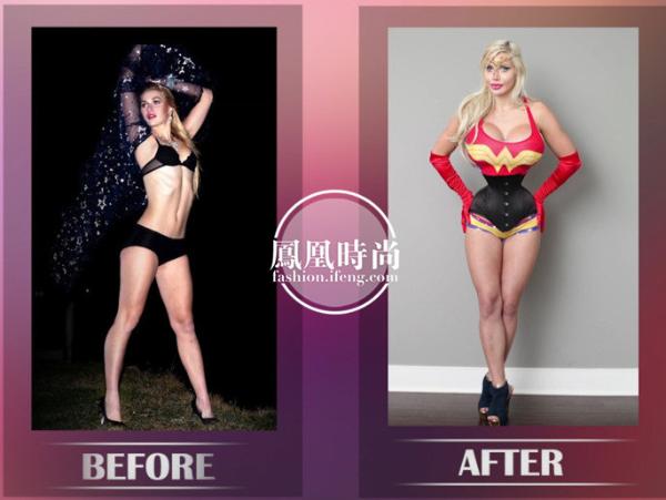 图为Pixee Fox整形前后的对比照,令人触目惊心。