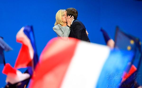 “没有她,我就不会是我。”今年4月,39岁的马克龙在赢得第一轮投票后这样描述妻子对自己的影响。图为在第一轮选举过后,马克龙亲吻了布丽吉特。