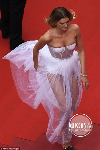 Lily Donaldson身着本季大火的Dior透视长裙,飘逸如仙女。