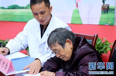 2016年11月11日,重庆沙坪坝区新桥社区卫生服务中心集中举办“家庭医生”服务签约仪式。图为居民代表签约家庭医生现场。(图片来源:新华网)