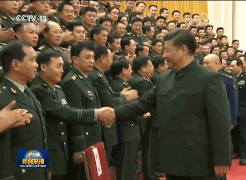 习近平同代表们亲切握手时,有个细节看后让人感动。当时,习主席面带微笑,伸出右手,从右向左,同站在第一排的代表逐一握手,代表们一般先鼓掌,轮到自己握手时,先用右手敬军礼,再用两手握住首长的手。