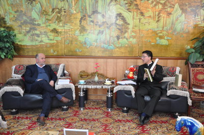 刘劲松大使(以下简称“刘”):很高兴与您结识。您是阿富汗新闻界的元老,曾主管电视台事务,上世纪90年代出任拉巴尼总统的新闻发言人,现在还担任信息文化部政府日报理事会主席,在阿新闻界颇有人脉与影响。您一向关心和支持“一带一路”,赴华出席并积极在阿举办有关研讨会,我对此表示赞赏。
