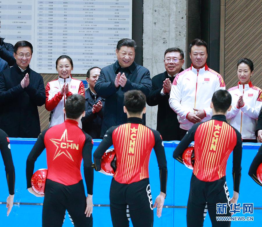 随后,习近平来到国家冬季运动训练中心,在短道速滑馆结合展板听取速滑、花滑项目介绍,之后进入馆内察看国家速滑队、花滑队训练备战情况。看到运动员们在冰面上挥洒汗水、刻苦备战,习近平表示赞许,叮嘱他们科学训练、注意安全。习近平步行前往冰壶馆,察看国家冰壶队训练备战情况。运动员、教练员看到习近平来了,争相围拢过来。习近平勉励他们注重选拔培养好人才,增强为国争光的荣誉感,坚定创造佳绩的信心,刻苦训练、全力备战、勇攀高峰,力争实现新的突破。冰壶馆前厅的沙盘,展示了首钢北区和冬奥会滑雪大跳台规划建设情况,习近平边看边问。他强调,体育强则国家强,国家强则体育强。发展体育事业不仅是实现中国梦的重要内容,还能为中华民族伟大复兴提供凝心聚气的强大精神力量。我们要弘扬中华体育精神,弘扬体育道德风尚,推动群众体育、竞技体育、体育产业协调发展,加快建设体育强国。考察结束时,习近平同运动员、教练员和工作人员代表等握手告别,现场响起热烈的掌声。