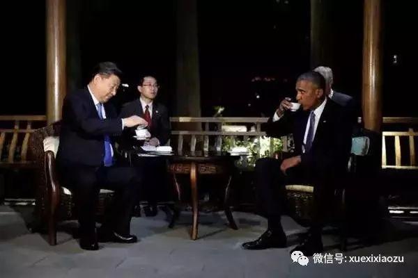 在G20杭州峰会召开前夕,习近平主席和时任美国总统奥巴马在杭州西湖国宾馆举行了一次重要会晤。会后,习近平与奥巴马在西湖国宾馆的凉亭喝茶并在湖边漫步。