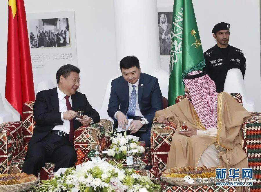 习近平在沙特阿拉伯国访问,期间参观了“四方宫”。在这里,习近平受到萨勒曼国王热情迎接。两国元首共同观看了剑舞等沙特民俗表演,兴致勃勃地与在场群众共同起舞。随后,习近平和萨勒曼国王品尝了阿拉伯咖啡和阿拉伯特色美食。习近平还参观了阿卜杜勒—阿齐兹国王生平纪念馆展厅,萨勒曼国王介绍了阿卜杜勒—阿齐兹国王生平。
