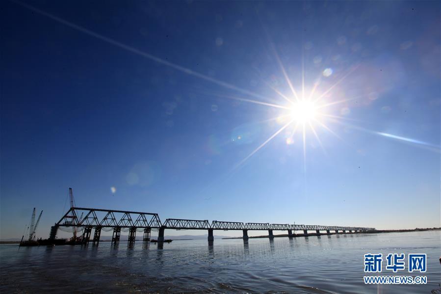 2018年10月13日,中国黑龙江省的同江中俄铁路大桥中方段主体工程全部完成。新华社记者 马知遥 摄
