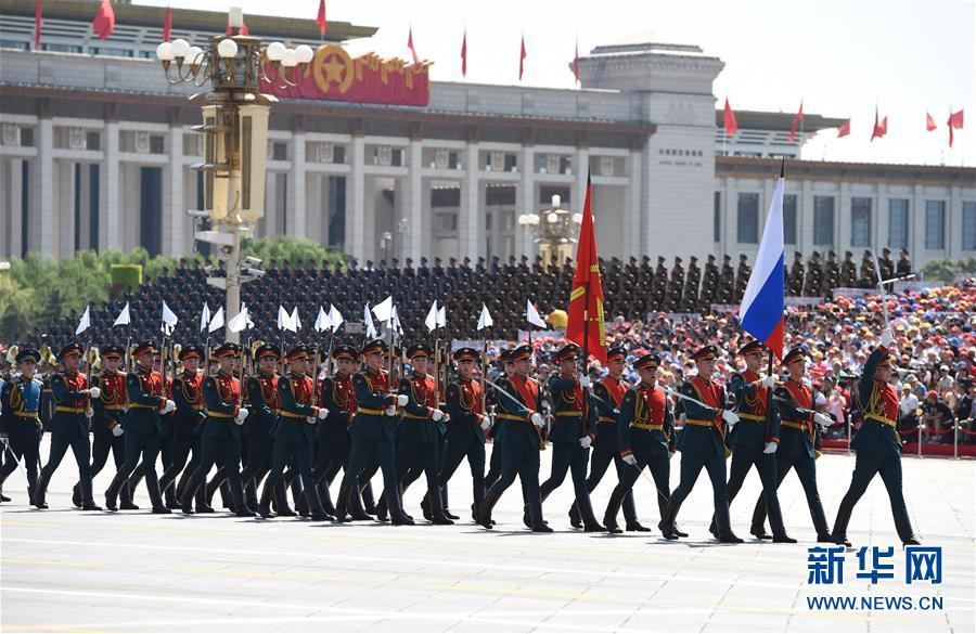 2015年9月3日,中国人民抗日战争暨世界反法西斯战争胜利70周年纪念大会在北京隆重举行,俄罗斯方队通过天安门广场。新华社记者 高洁 摄