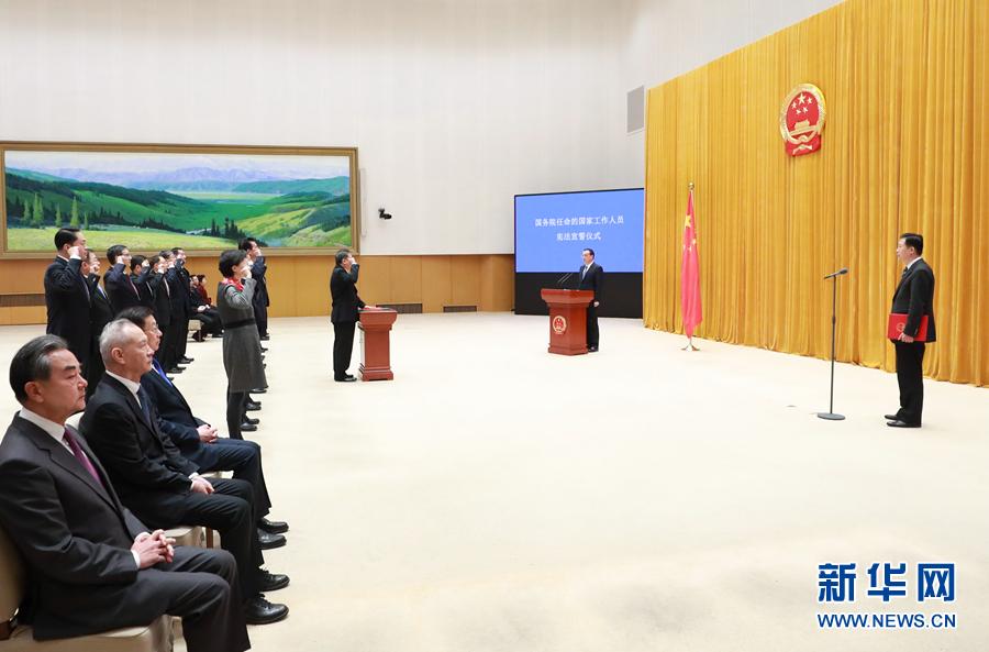 宣誓后,李克强说,忠于宪法、遵守法律是每一名公职人员必须遵循的基本行为准则,让人民过上好日子是每一名公职人员必须谨记的奋斗目标。他要求大家坚持以习近平新时代中国特色社会主义思想为指导,依法履职,为民履职,实干履职,廉洁履职。带头尊法学法守法用法,积极推进改革创新,在攻坚克难中彰显担当,在狠抓落实中展现作为,严守纪律规矩,严格秉公用权,勤俭办事,厉行节约,倾情竭力把人民群众最关切最期盼的事情办实办好,齐心协力推动经济社会持续健康发展。