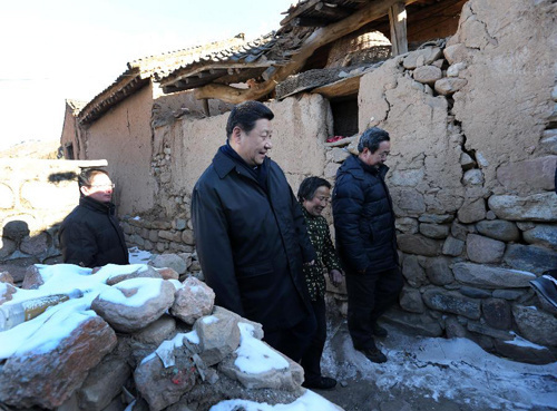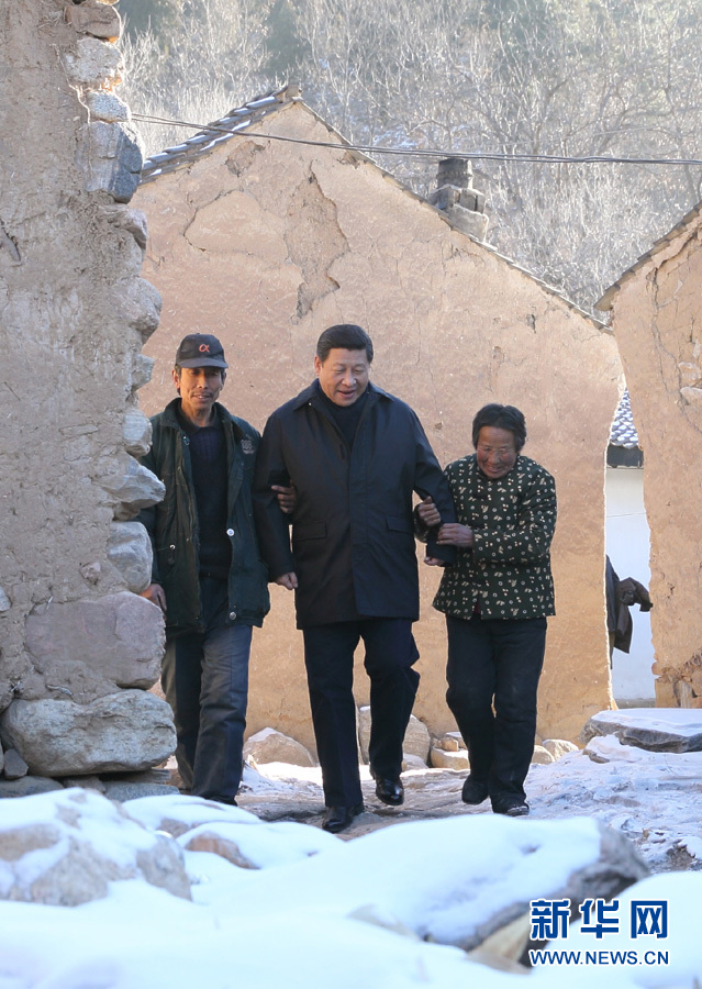 2012年12月30日,习近平来到地处深山的龙泉关镇骆驼湾村,走进困难群众唐宗秀(右)家慰问看望。新华社记者 庞兴雷 摄