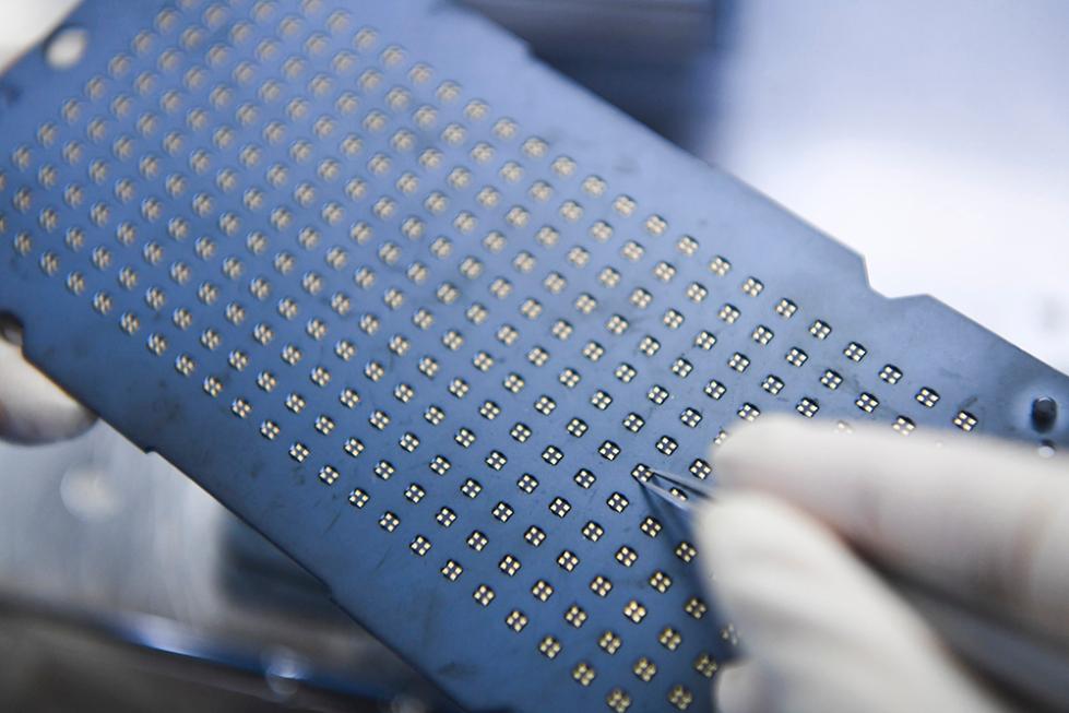 ↑3月3日,位于重庆高新区的台晶(重庆)电子有限公司工作人员在晶振封装无尘车间内作业。新华社记者 王全超 摄