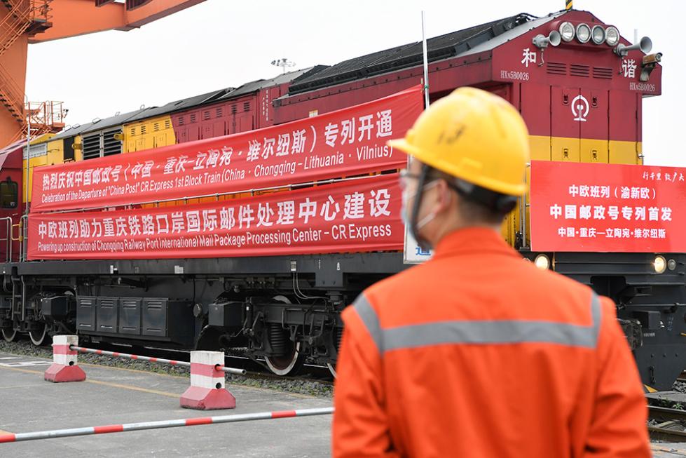 4月3日,中欧班列(渝新欧)“中国邮政号”从重庆团结村站缓缓驶出,为疏运国际邮件开辟出新通道。