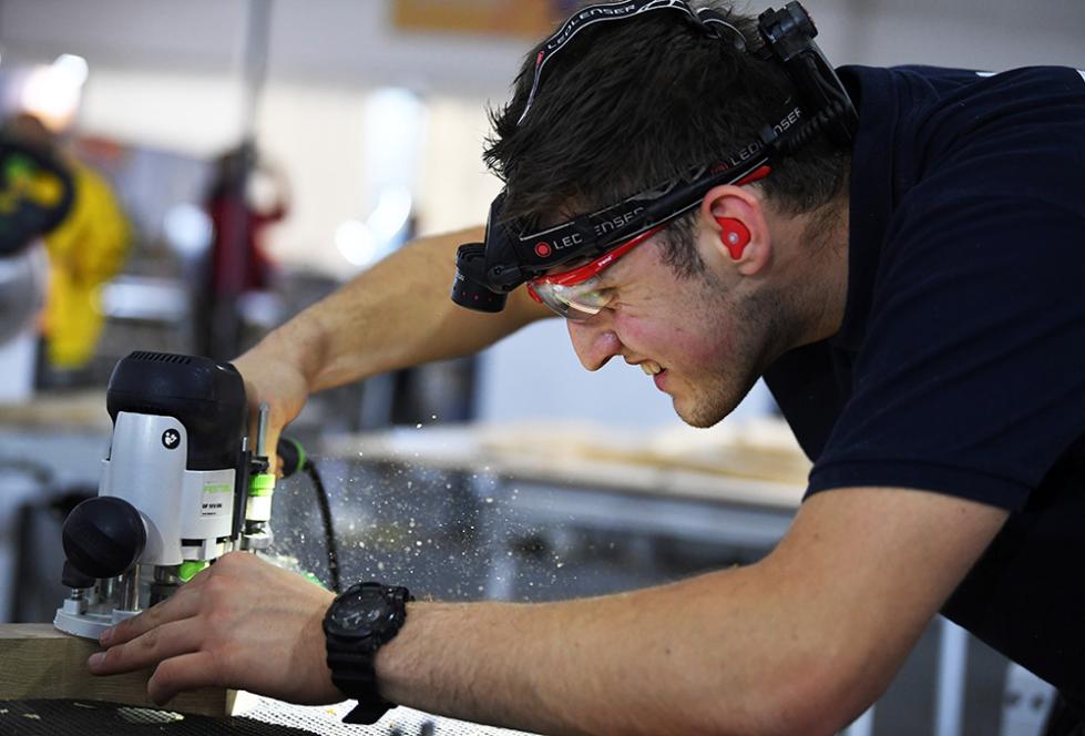↑选手参加“一带一路”国际技能大赛精细木工项目比赛(2019年5月29日摄)。新华社记者 王全超 摄