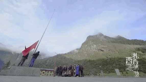 △每周一的清晨,西藏隆子县玉麦乡村民都会举行升国旗仪式,嘹亮的《义勇军进行曲》响彻幽深的河谷。