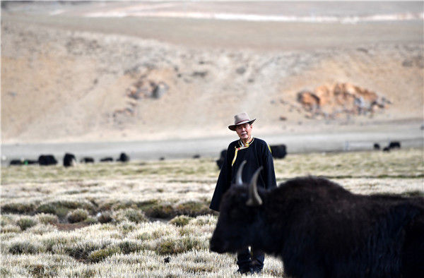 △2019年5月23日,吴雨初在藏北考察牦牛。