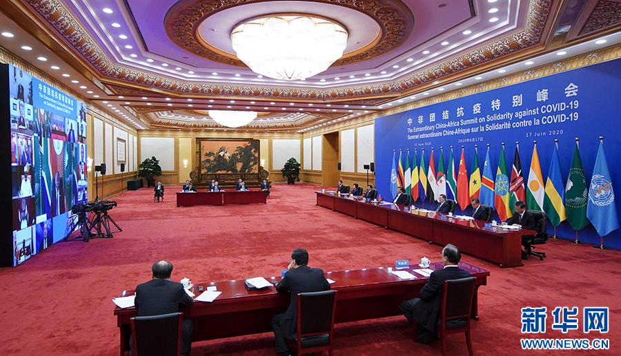 6月17日晚,习近平在北京主持中非团结抗疫特别峰会并发表题为《团结抗疫 共克时艰》的主旨讲话。 新华社记者 丁海涛 摄
