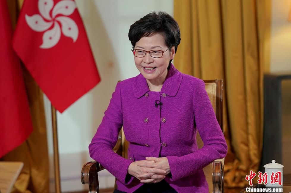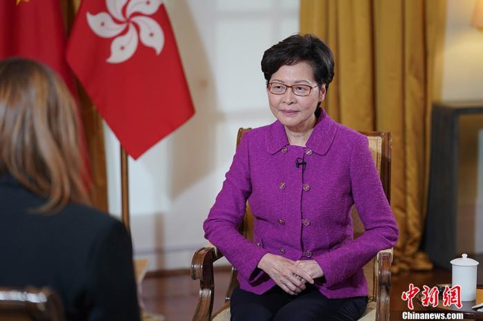 香港特别行政区行政长官林郑月娥接受中新社“中国焦点面对面”专访。中新社记者 张炜 摄