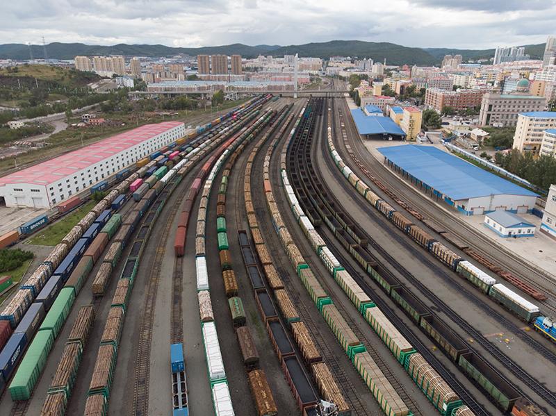 △2020年9月9日,黑龙江省绥芬河火车站北场装满物资的货运车厢