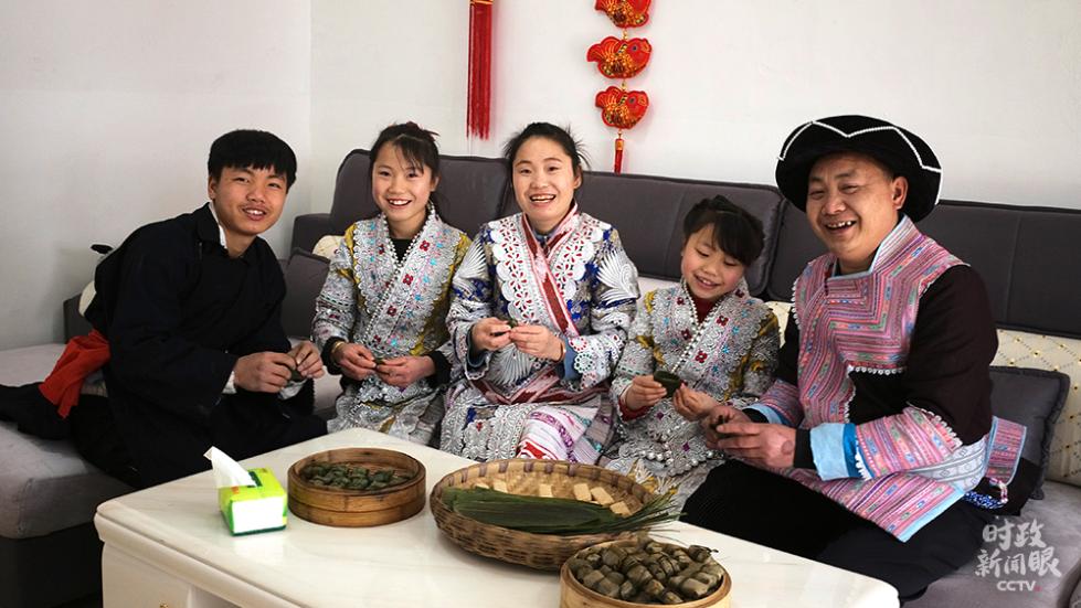 当天,习近平走进化屋村看望乡亲们。38岁的苗族村民赵玉学,曾是化屋村精准扶贫建档立卡户。他和妻子杨鹏英去年在福建莆田打工,上个月刚刚回到老家过年。2月3日下午,总书记到访这个五口之家时,一家人正在制作当地传统节日食品黄粑。总书记同一家人围坐客厅,亲手包了一个黄粑,祝福赵玉学一家今后的日子过得更加幸福、更加甜美。