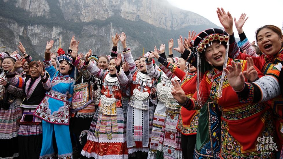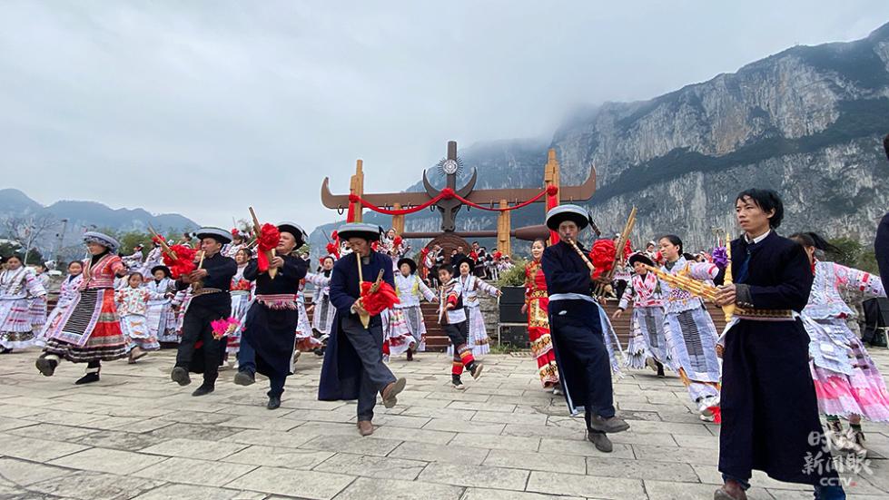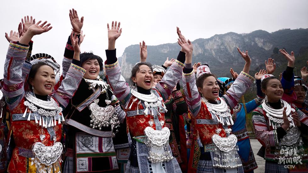 △视频丨化屋村村民唱起苗族语欢歌,歌词大意是“我们都是好朋友,一起跳舞吧”。(总台央视记者杨立峰拍摄)