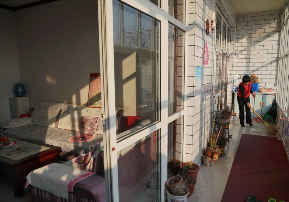 2月9日,平山县西柏坡镇北庄村的村民王俊彦在家中打扫卫生。新华社记者 杨世尧 摄