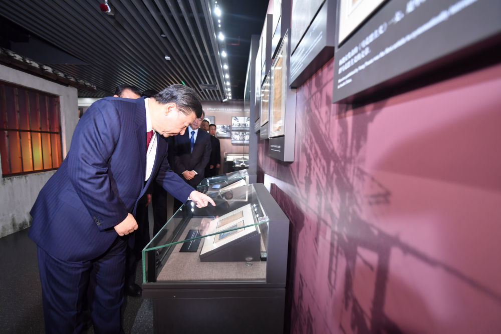 2017年10月31日,习近平等在上海中共一大会址纪念馆参观。新华社记者 李涛 摄