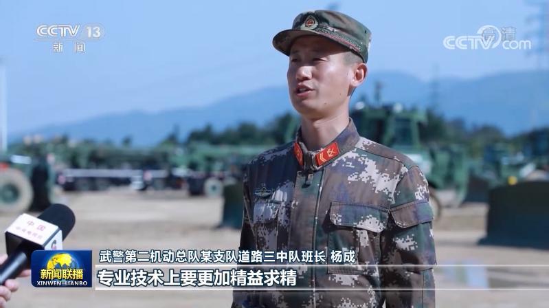 武警第二机动总队某支队道路三中队班长 杨成: 主席要求我们,专业技术上要更加精益求精。我一定会牢记主席嘱托,严格训练、严格要求,把专业技术练得更好、更强、更精。