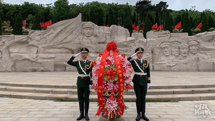 25日上午,总书记向湘江战役红军烈士敬献花篮,并参观了红军长征湘江战役纪念馆。