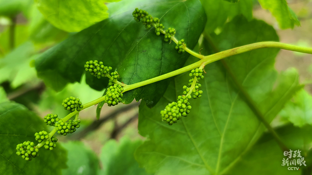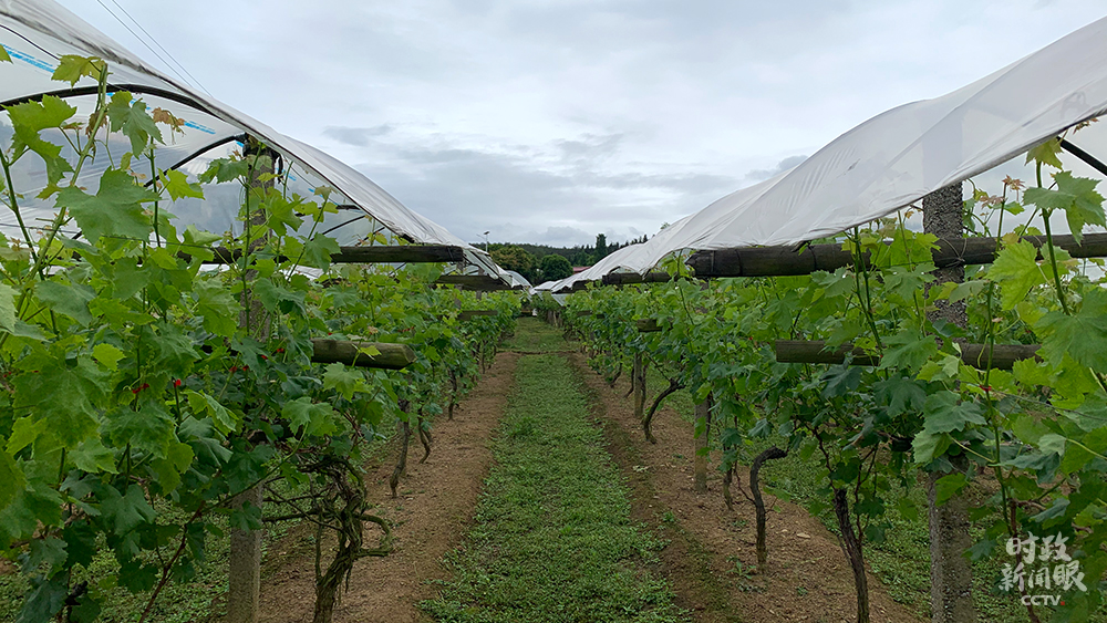 △白色塑料膜的棚架下,是村里种植的多品种葡萄。(总台央视记者马超、张晓鹏、赵化拍摄)