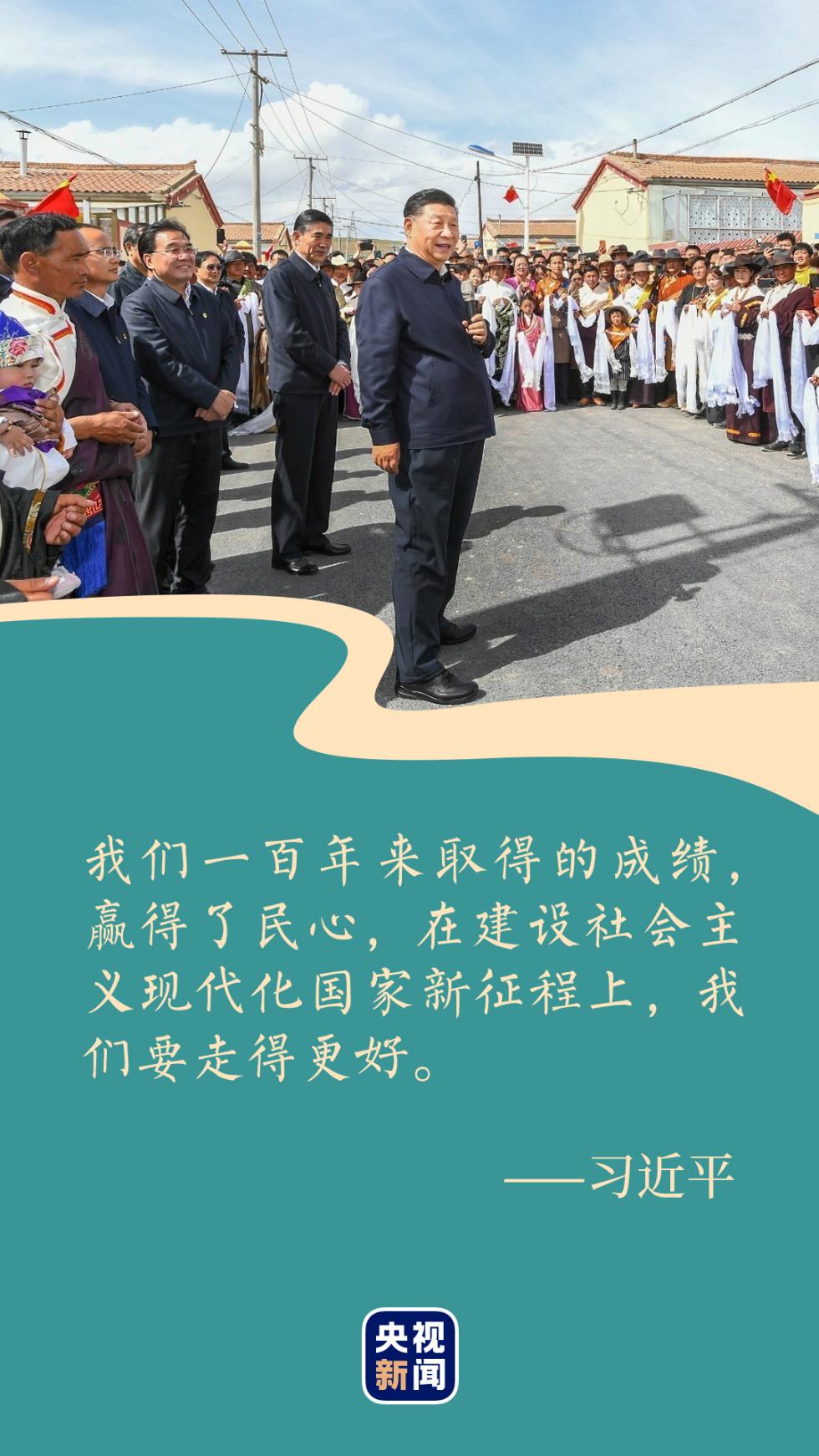 总书记走进牧民索南才让家中,看望慰问藏族群众。索南才让说,牧民生活好,全靠党的政策好,衷心感谢党、衷心感谢总书记。习近平深情地说,我们党成立一百年了,为什么老百姓衷心拥护中国共产党?因为我们党始终全心全意为人民服务、为各民族谋幸福。