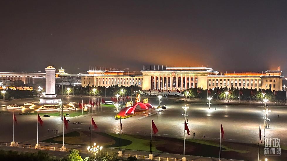 △7月6日,夜幕中的人民大会堂和天安门广场。(总台央视记者薛冠南拍摄)