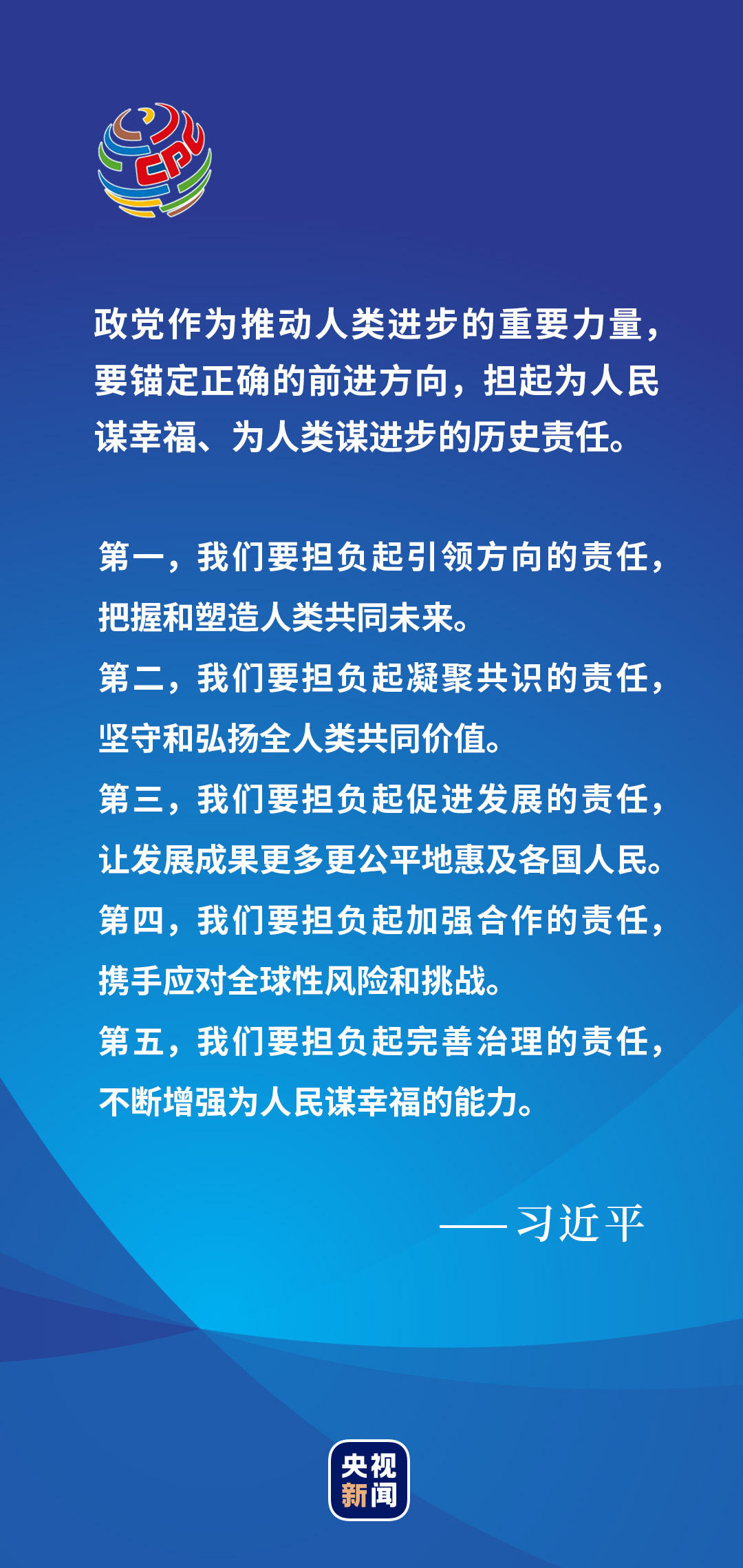 在中国共产党与世界政党领导人峰会上,习近平总书记再次向世界宣告百年大党的坚定选择——中国共产党愿同各国政党加强沟通,共同引导经济全球化朝着更加开放、包容、普惠、平衡、共赢的方向发展。