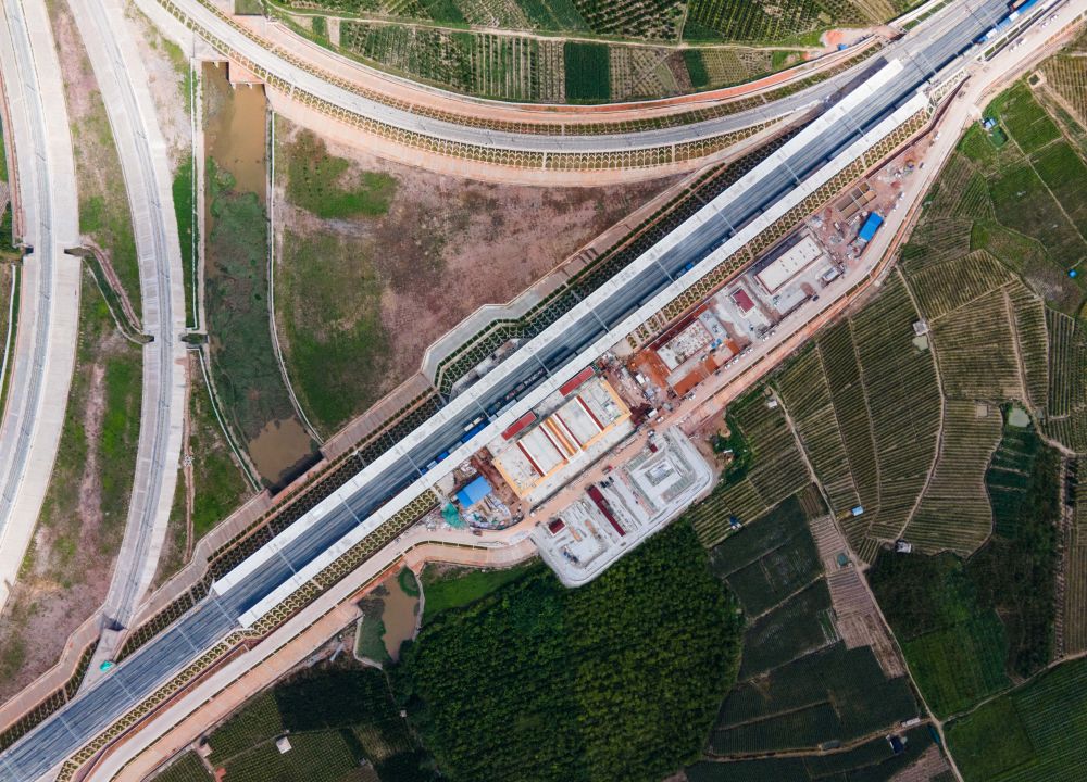 △建设中的中老铁路野象谷车站(6月17日拍摄)