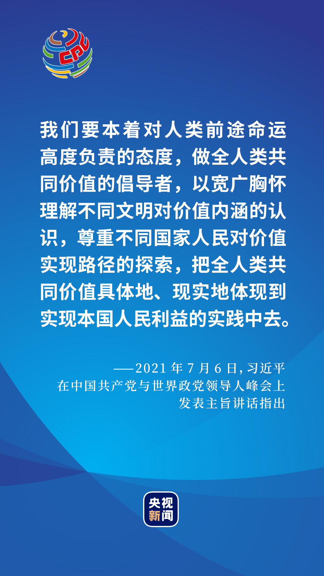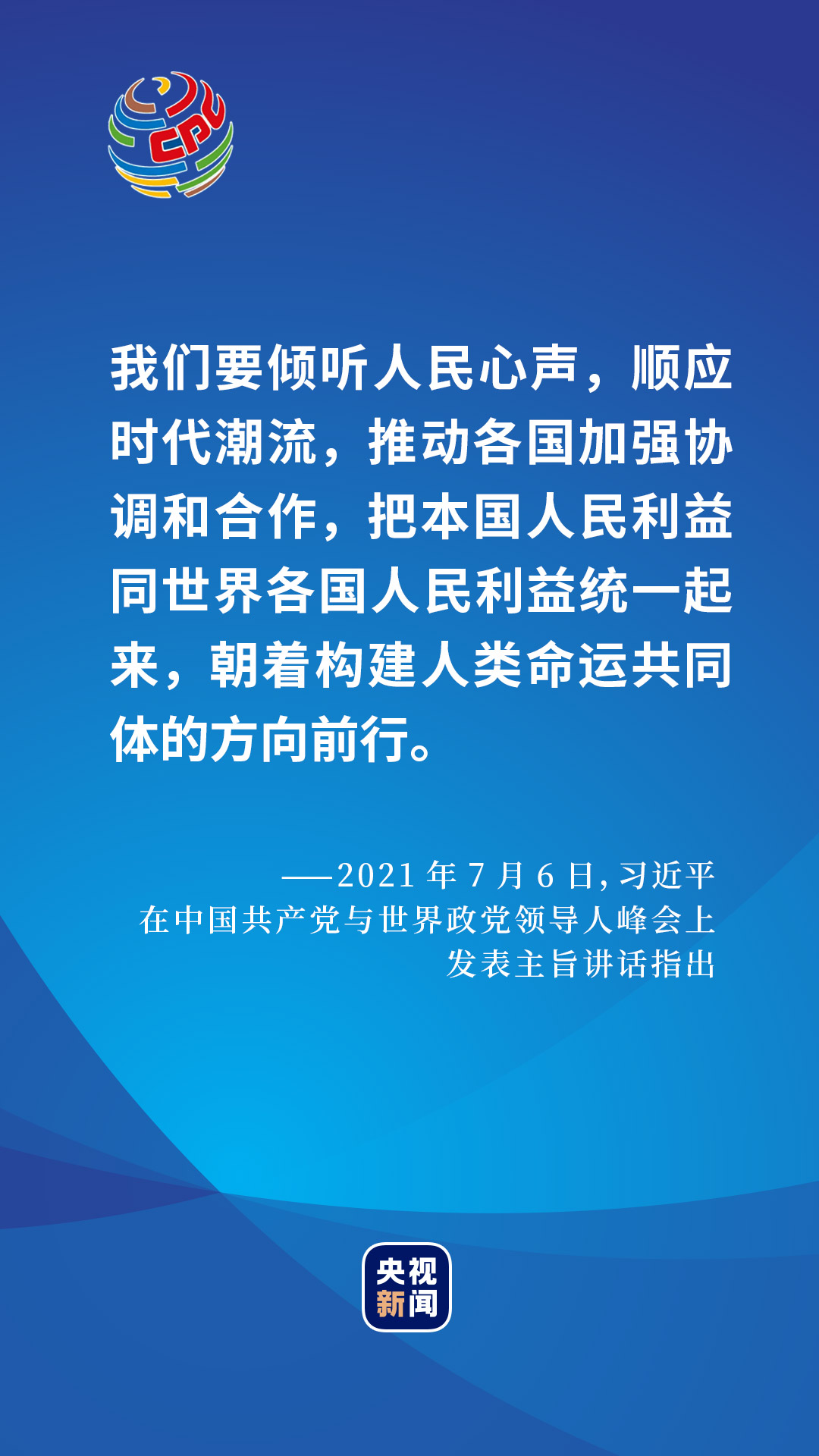 2021年7月6日,在中国共产党与世界政党领导人峰会上,习近平总书记给出了一个百年大党的选择和主张。