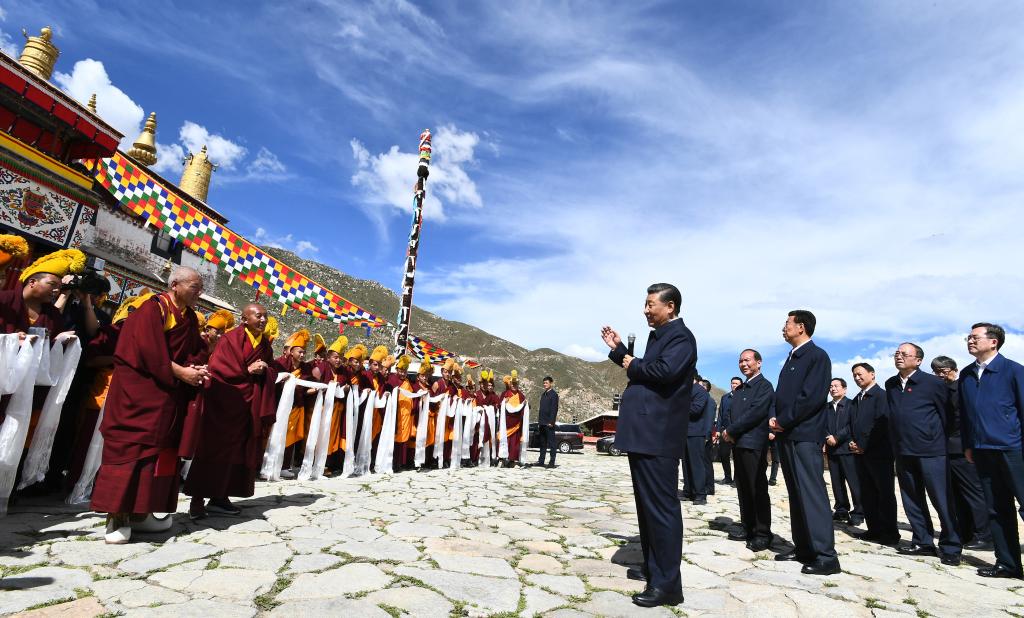 7月22日下午,习近平在位于拉萨西郊的哲蚌寺同僧人亲切交流。新华社记者 谢环驰 摄
