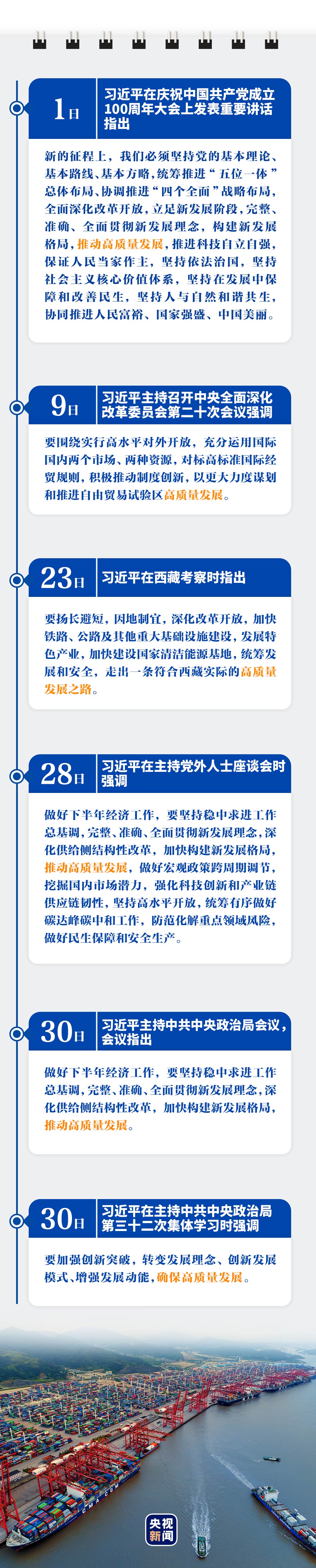 7月里,中央全面深化改革委员会第二十次会议、党外人士座谈会、中共中央政治局会议……习近平总书记主持一系列重要会议,高质量发展都是题中之义。