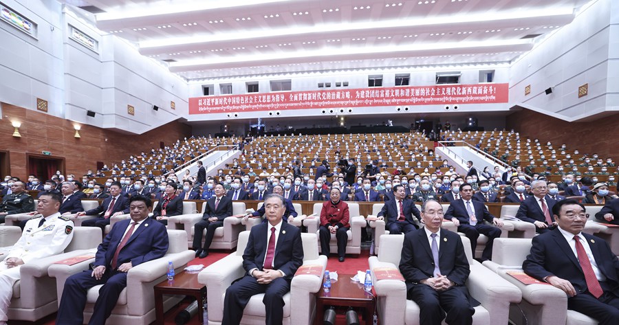 汪洋观看庆祝西藏和平解放70周年文艺演出《西藏儿女心向党》 会见西藏自治区领导班子成员、离退休老同志,各族各界、寺管干部、政法干警和驻藏解放军、武警部队官兵代表