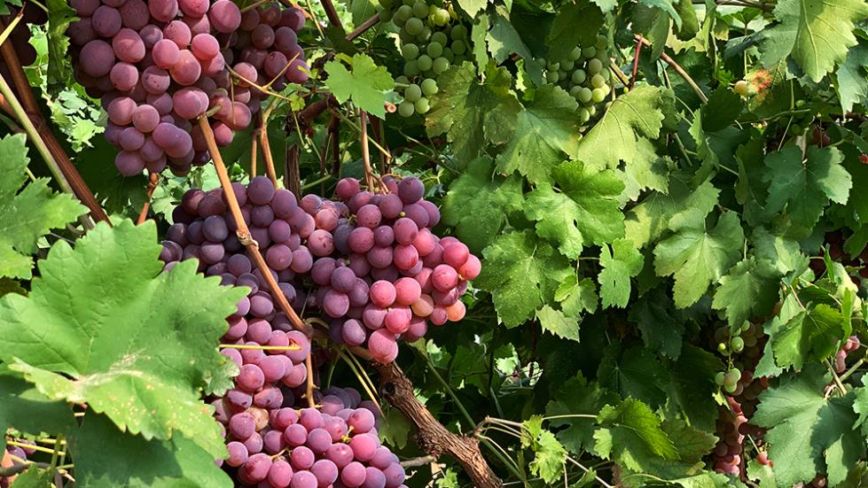 △郝家桥村温室大棚种植的“红地球”葡萄,特点是产量高、耐贮运。(总台央视记者马超拍摄)