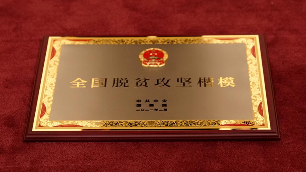 △“全国脱贫攻坚楷模”奖牌。(总台央视记者彭汉明拍摄)